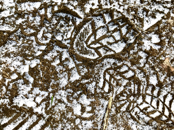 On our walk this morning, along the country road that we live on, with trimmed hedges on each side, rushy ditches edging the fields beyond, and a white rusted pole alongside, I started to take photos of what I noticed (or what was shown to me), and thought about the colours, textures, shapes and patterns, as the language of my local patch,