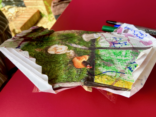 What I took away from my workshop was the focus on multi-sensory experience, as people included scent and texture in their pieces, reponding to experiences of lavender, the wind or the shape of the chicken run. I was interested in how 2D images were folded, cut, rolled, and queered. Semi transparent layers were placed over the top of the ‘official’ photographs of the Museum grounds, holding text that related to experiences of childhood gardens. Others had holes punched through them, or were drawn on to explore the unseen reality beneath the surface.