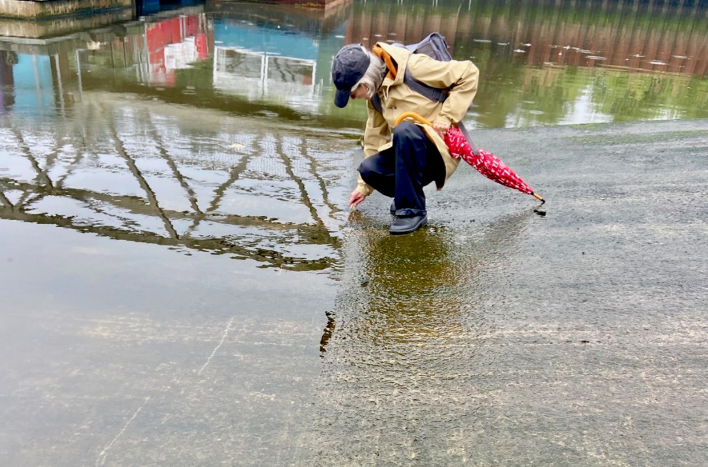 We met at The Snow Bridge, a pedestrain bridge over the River Kelvin at the edge of Kelvingrove Park, in heavy rain. Although we did get a bit wet, it was a perfect opportunity to observe the path of water through the city. The project was named Queer River, Wet Land as we wanted to focus on the interrelationship between land and water, river and substrate. I was keen that we continue to queer the idea of what a river is, to blur the boundaries between river and city, moving away from the blue line on the map with clearly drawn edges.
