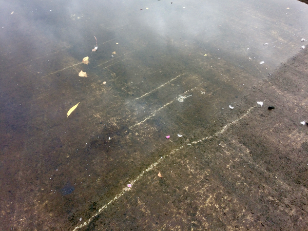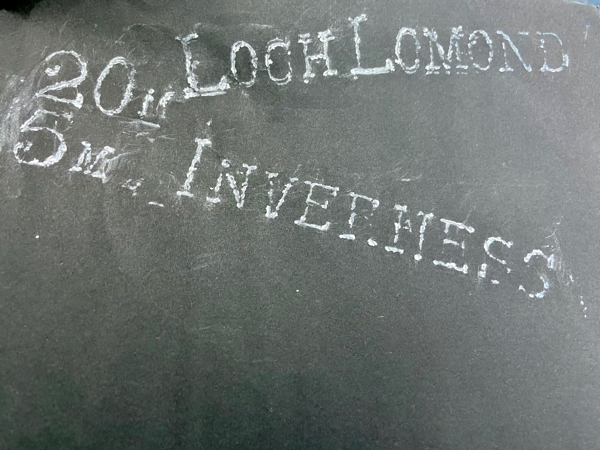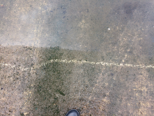 ‘I’ve attached some images of the chalk lines that James and I made (tracing the rapidly incoming tideline) on our Thursday walk as they appeared underwater when we visited the slipway on Friday. I found tracing the line between water and land very satisfying, while pondering how weird it was to draw hard lines between water and land (as the city centre architecture of the Clyde does).’