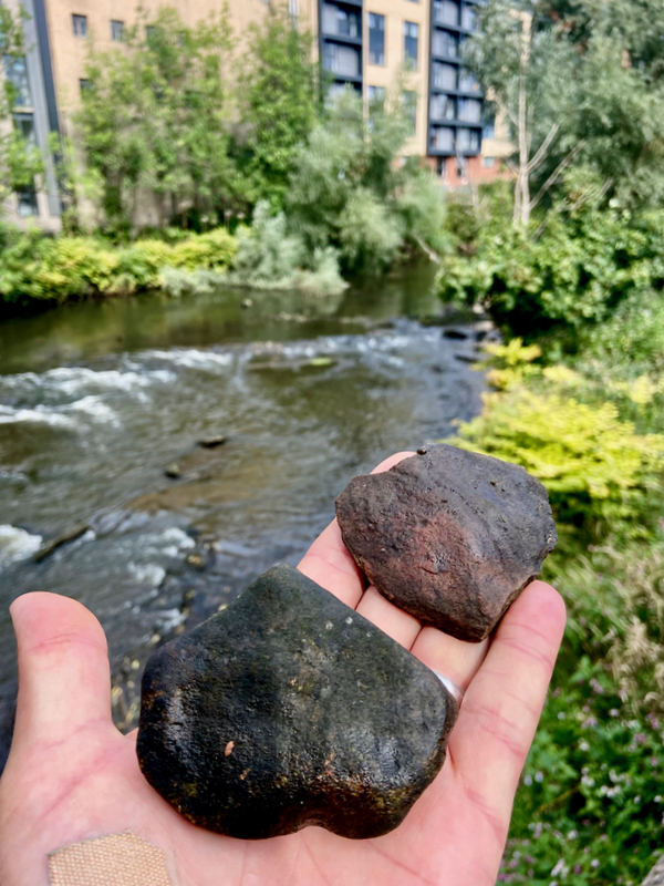 Minty’s own work for The Dear Green Bothy makes use of rocks and silt to explore this relationship of river to city. In her project Erratic Drift with Nick Millar, Minty works, ‘in collaboration with the rocks, stones, and silt of Glasgow’, as well as human collaborators. Alluvial Drift, one of three actions that take place as part of the project, uses a performance score to invite the performer to ‘Borrow some silt (mud) from the River Clyde. Dry the silt until it is a fine powder. Walk along the geological drift line marking the extent of the river’s alluvial plain, which lies underneath parts of the city centre. Sprinkle silt along the line as you walk…’