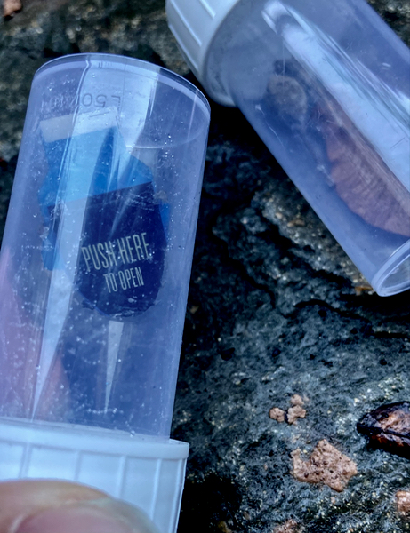 on the grey bridge under their feet a small brown slug squidges past a sycamore wing a plastic cup lid, and an orange train ticket;