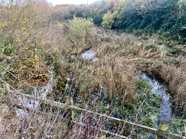 As we reached the area of the Rodden Nature Reserve, where I’d read the family of beavers were living, we looked down over a bridge and watched for signs of movement, or evidence of beaver teeth on tree stumps. This southern area of the reserve is surrounded by roads and the Asda car park. A ‘wild’ (unofficially reintroduced) animal has chosen the reedy, swampy, scrubby area created by a supermarket chain to make its return.