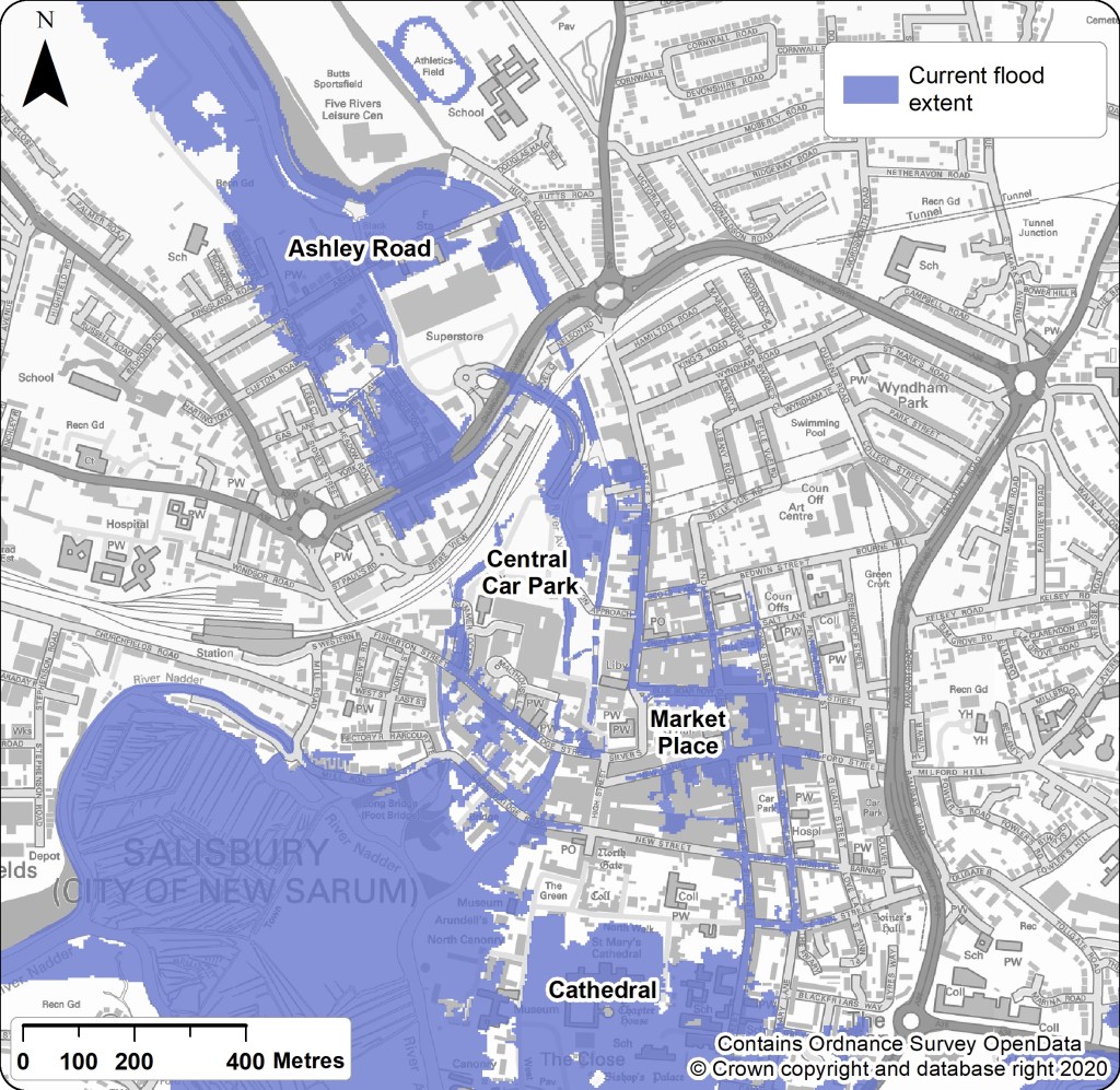 The Salisbury River Park Project responds to the increased flood risk to Salisbury city centre from climate breakdown (see the image below for areas currently at risk – https://flood-map-for-planning.service.gov.uk/), as well as the need to improve riverside habitats for wildlife and improve access to the river for local people and visitors to the city.