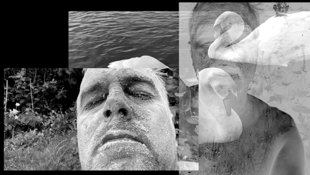 So for this new film I’ve been spending time with the Mute Swans that live on the Avon, experimenting with filming them underwater, and layering footage of them with the whiteness of local chalk, and their bodies with my body.