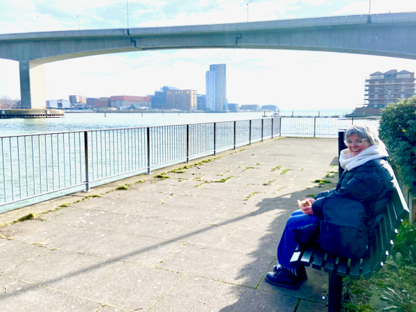 Alys is a visual artist and a coach/mentor for creatives, who carried out a previous pop-up studio residency in March 2024 alongside the Pia Arke Silences and Stories exhibition. Ays is also a fellow member of the PaC Artists Network. Before our walk Alys helpfully Whatsapped me a route from the gallery that I followed via Mayfower Park and the Town Quay, and along Canute Road, before meeting her next to the River Itchen Bridge.