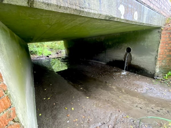 When I reached the river I climbed down to look under the bridge. It didn’t smell great. Water was pouring in from a pipe under the bridge as well as starting to flow through the river channel. Our nearest bridge has two ‘arches’, one that always has at least a trickle, and this other one that had dried up completely. It was encouraging to see a thin ribbon of water starting to make its way back to form the smaller channel, but the smell of sewage (or something like it) was pretty off-putting.
