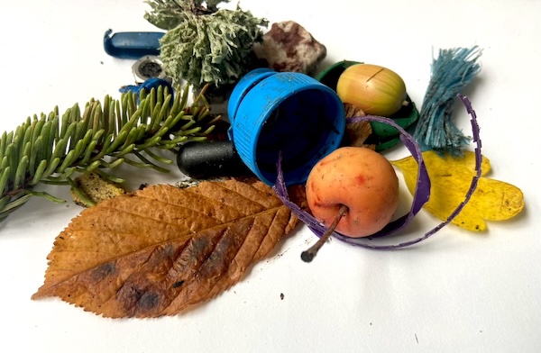I live on a very slight hill, the continuation of the edge of Salisbury Plain, sloping down to the beginnings of the Hampshire River Avon. When rain is heavy it forms little streams down our road, heading for the river. These temporary streams leave behind clumps of straw from the recent harvest, along with plastic bottle tops and metal bits and pieces lost from vehicles, acorns and sycamore seeds.