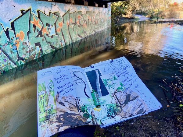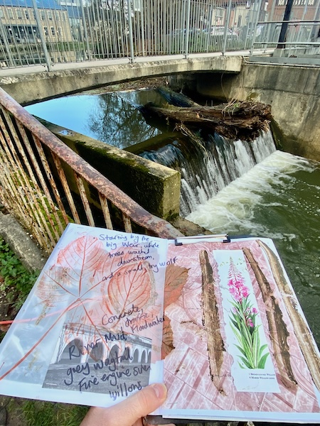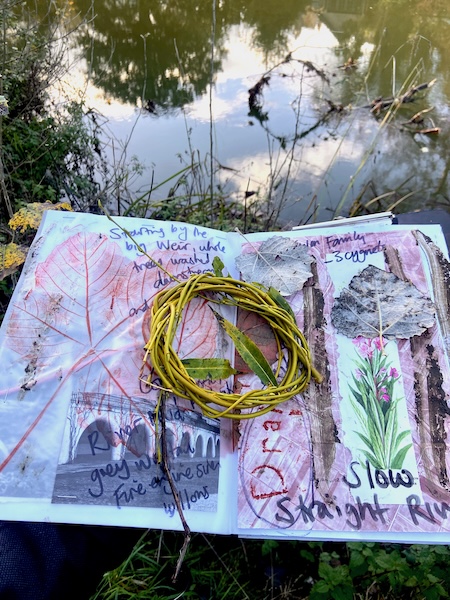 What I am primarily ‘Walking Out’ of then, are inherited ideas of the urban and rural, of what a river is and who lives there. What I’m ‘Walking Towards’ are direct experiences of the reality of that place, received through my body and my senses, and processed through making. The making of this kind of artwork acts as a mechanism for noticing and recording (in a similar way to my Walking Bundles). I do it to understand rivers as communities of life that weave the urban and rural together, experiencing which animals and plants live where, and the impact that different kinds of land-use have on the ability of a river community to live, grow and flow.