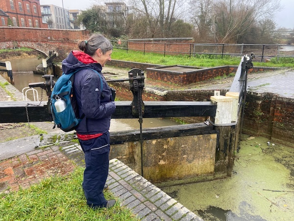 The Tone was full and heavy, muddied and brown, and had left piles of tangled branches and plastic on the banks, or hanging from trees. A Cormorant flew past following the path of the river, later followed by a Kingfisher. As visitors to the river we pondered the need for the barriers that form the two different sections of the Firepool Weir, and the Firepool Lock where the river flows into the Bridgewater and Taunton Canal We’ve each developed projects centred on improving river connectivity for migratory species, linked to the demolition of weirs, sluice gates etc. (e.g. Salmon Run and The Ripple Effect).