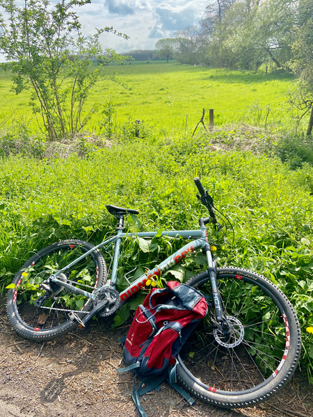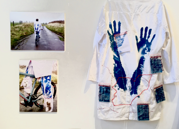 Back in 2018 I exhibited a piece of work called Heavenly Body, which recorded my experience of cycling a circular route which ‘orbited’ my home in the Vale of Pewsey. I used cyanotypes and sunlight to print images of plants that I found along the way, and stitching to attach objects that I collected and to embroider a map of my route. In the lead up to the exhibition (Art After Turner at The Willis Museum, Basingstoke) I experimented with ways to document bike rides, and started to think about how the experience of a place from a bike ride, differed to the awareness of that same place gained by walking.